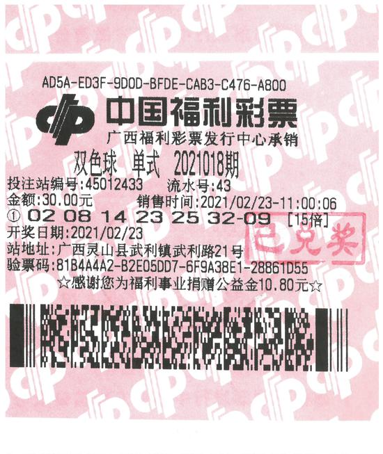 2月23日晚,中国福利彩票双色球游戏进行第2021018期开奖。当期双色球红球号码为02、08、14、23、25、32,蓝球号码为06。