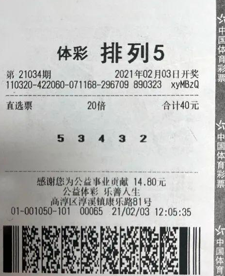 2月3日,体彩排列5第21034期开出中奖号码“53432”,江苏南京3201001050体彩网点购彩者梁先生喜中20注一等奖,收获奖金200万元。