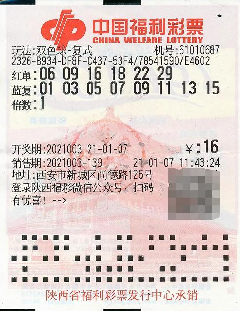 1月7日上午,正休假的李先生让西安市新城区尚德路61010687号投注站销售员打了两张6+8半蓝复式票。