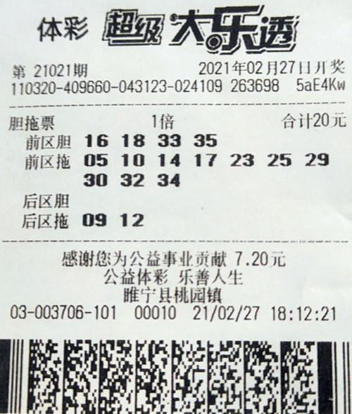 前不久,体彩大乐透21021期开奖,当期中奖号码为“16、18、29、33、35+09、12”,小江除中出当期1注一等奖,还中出9注二等奖,总奖金达到10027000元。
