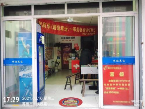 3月9日晚上,昆山市枫景苑C区32050851投注站一购彩者许先生中得刮刮乐“超级幸运”一等奖100万元。