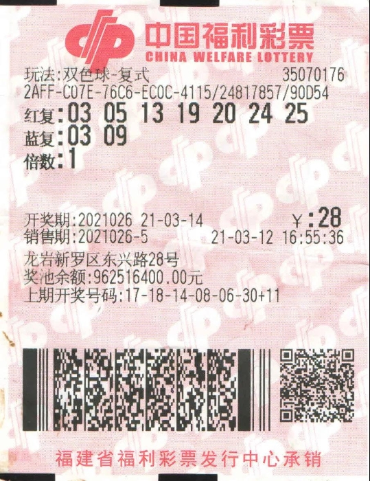 3月14日晚,双色球第2021026期开奖,爆出74注单注奖金为507万元的超值一等奖,福建中得3注,其中1注花落龙岩市新罗区东兴路28号的福彩35070176彩站,幸运彩民凭借一张7+2的复式票收获一等奖1注、二等奖1注和一些固定奖,总奖金达510万元。然而,大奖中出几天后,大奖得主却迟迟未到龙岩福彩管理站兑奖。据该彩站经营者林姐讲述,大奖得主周先生(化姓)是该站点的老彩民,隔三差五地就会到店里买彩票。3月12日下午,周先生到店里买双色球时,一改以往机选的习惯,而是自己研究号码选了1组7+2复式号,其中一个蓝球号码是“03”,和当期林姐店里合买票的蓝球一致,所以她印象深刻。