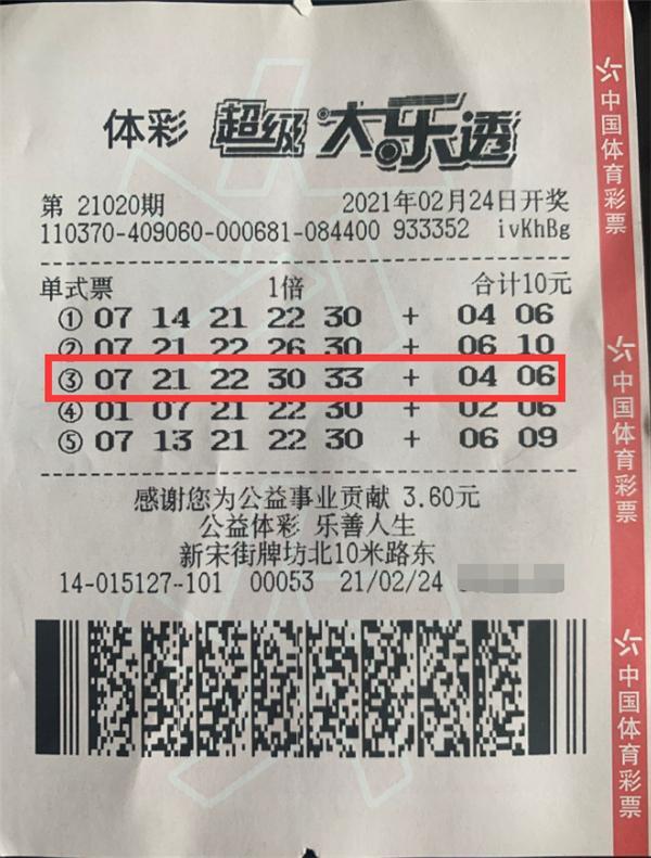 老丁(化姓)来自梁山县,多年前就开始关注大乐透,尤其喜欢研究走势和号码。春节休市期间,老丁一有时间就坐下来,对照着往期的开奖号码潜心研究。大奖中出的消息传出后,大家纷纷猜测中奖号码是否通过机选产生的,对此,老丁憨厚地一笑:“猜对了一半!”中奖当天,老丁进店兑奖,想起当天正值大乐透开奖日,老丁便从手机里翻出自己以前琢磨好的号码。“那一期,我前区选好了07,21,22和30,后区选好了06,至于其他的号码选什么,我一时没了主意。当时正好临时有事,就用机选的号码补足了这5注号码,于是就有了这么一张票。”老丁回忆说。