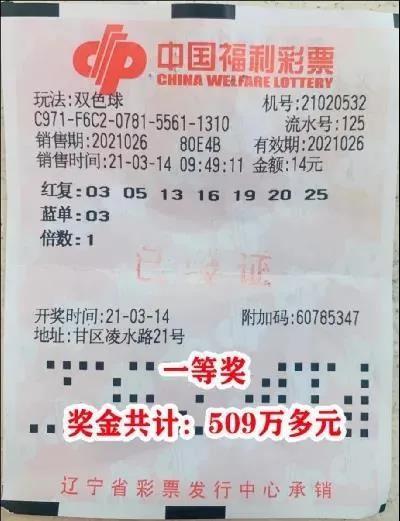 3月14日晚,双色球第2021026期开奖,当期开出74注一等奖,单注奖金507万多元。大连市中出1注一等奖,中奖站点是在位于甘井子区凌水路21号的第21020532号站点。3月22日,一家三口才现身大连市福彩中心兑奖室兑奖。