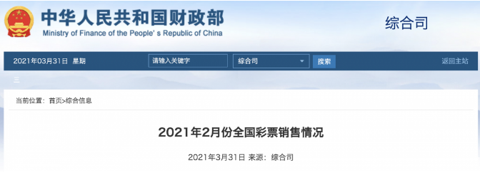 消息特别说明,受去年新冠肺炎疫情、春节休市延长等特殊因素影响,2020年2月彩票销量近乎为零,加上政策调整等多种因素,2021年2月彩票销量同比不具有可比性,单月和累计销量同比情况暂不作统计。
