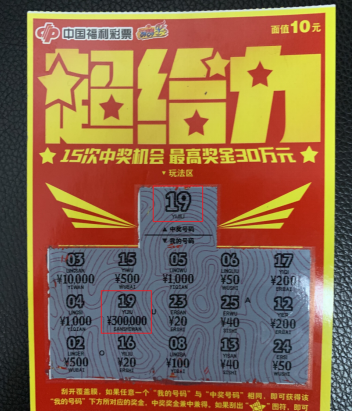 3月30日下午,舟山市福彩中心来了一对情侣,他们手中拿着一张面值10元的福彩即开型彩票“超给力”,经工作人员确认,这张彩票喜中30万元奖金。