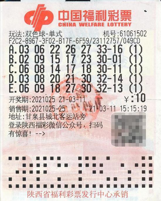 3月11日下午三点多,张先生路过延安市甘泉县城北客运站旁61061502号投注站,像往常一样打了守号票。
