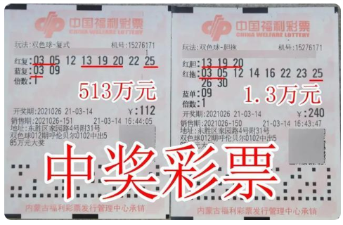 编者按:3月14日晚,双色球第21026期开奖中,内蒙古彩民牛气冲天一举斩获5注一等奖。非常巧合的是,3月17日,呼和浩特市1019万、鄂尔多斯市513万以及兴安盟516万得主先后现身当地福彩中心兑取了奖金,都能