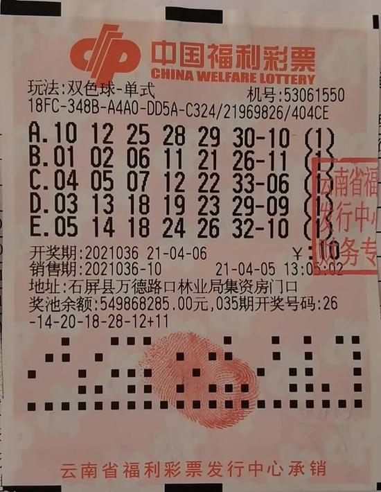 4月7日一早,这位幸运彩民就来到云南省福利彩票发行中心,火速领走了属于自己的大奖。这注头奖出自红河州石屏县万德路口林业局集资房门口53061550号投注站,中奖彩票是一张10元单式票。