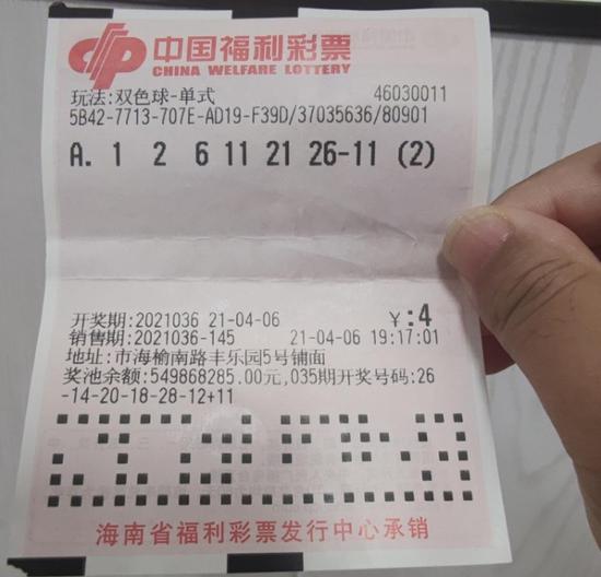 陈先生称自己在双色球发行那年就开始买彩票,彩龄近二十年,几乎期期必买,以往最高只中过50元,但他一直抱着支持公益的心态购彩,并未想过会中大奖。他告诉记者,虽然自己在北方工作,但由于家中老人在五指山养老,每年他一有空就会来五指山看望老人,小住几日。4月6日晚7时许,他像往常一样,来到福彩站点凭感觉选中了一组数字,买了两注,花费4元。第二天看到开奖信息后,才发现自己选的号码和一等奖号码一模一样,“海南真是我家的福地!”