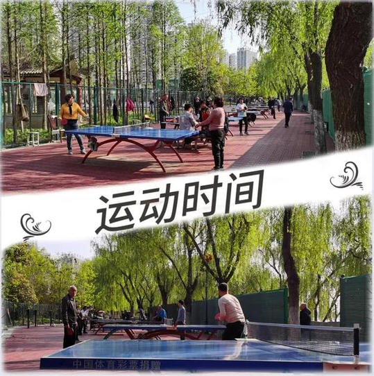 沿着河畔缓行,不知不觉就来到了健身园。一组组人在乒乓球台前激战正酣。