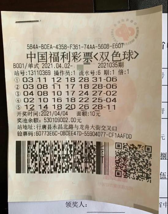 4月4日,双色球2021035期开奖,石家庄市行唐县永昌北路与龙州大街交叉口北侧13110369站幸运彩民以一张10元5注单式票中出一等奖1注,单注奖金784.4638万元。近日,彩民徐先生(化姓)与朋友一起来到河北省福彩中心兑奖。初见徐先生时,他把帽檐压得很低,语气严肃略带紧张,时不时的握紧双手。徐先生告诉我们,由于他经常路过369站,这里就成了他固定休息娱乐的地方。谈到自己买彩的心路历程,徐先生反复强调四个字:顺其自然。“我喜欢买双色球,但每次投注也就是5注、10注。买彩票时,我从来不考虑号码,虽然偶尔也会自己选,但选来选去太费劲了,还不如机选来的简单随意。我觉得一切都要顺其自然,咱们要是有这个财运自然而然就中了,没有的话也强求不来。”