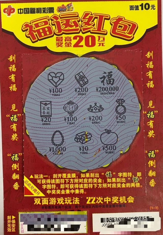 为避免兑奖出错,李先生表示愿意等。在等待的过程中,李先生又走到刮刮乐展示箱里瞟来瞟去,突然觉得一种叫《福运红包》比较顺眼,于是,便向销售员买了10来张坐下来边刮边等。刮着刮着,他在一张彩票中刮出了一个“福”字图符,图符下方对应的奖金是“¥200000”,从未中过大奖的李先生顿时感觉一阵热血直冲上头脑,赶紧拿着彩票去销售员那里确认一下,原来是真的中了头奖!他想,这个“等待”真值钱啊!待系统升级完成后,李先生兑完刚才的那些小奖彩票,再揣着这张大奖的《福运红包》大奖彩票满心欢喜地回家,择日再到市福彩中心兑奖。