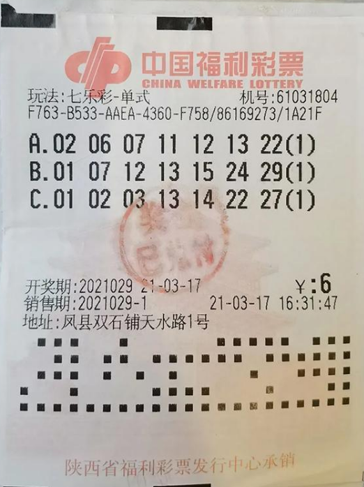 3月17日晚,七乐彩开出全国唯一大奖120万元。这独一份的幸运,“砸中”宝鸡凤县彩民。好运出自一张6元的单式机选票,其中第2注号码拔得头筹。