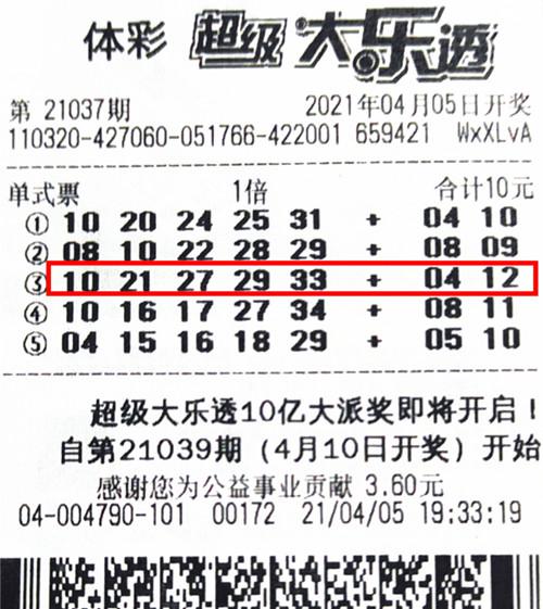 随机投注10元命中809万大奖出当期809万大奖,很好的诠释了大乐透“乐透不止,畅活有你”这句彩市流行语。小沈买彩不过两年时间,可谓是彩市新人,最先接触的也是体彩大乐透,此后就紧紧跟随这个彩票玩法,几乎每期必投。他平常工作也很忙,所以也无暇研究,到了体彩网点就是随机投注大乐透,是典型的随机一族。今年以来,大乐透频繁开出大奖,小沈也是看在眼里,跟是一期不落的投注大乐透,生活错过任何一期,而投注方法还是极其简单的随机投注。无论哪种投注方式,都有问鼎大奖的机会。4月5日,大乐透21037期开奖,当期中奖号码为“10、21、27、29、33+04、12”。小沈当期照样是10元5注的随机投注,其中第3注正是当期的中奖号,奖金达到8094047元。在江苏兑奖大厅,小沈已逐渐恢复了平静,坦言自己一家人在常州打工很辛苦,准备回老家买房买车,好好犒劳一下自己。