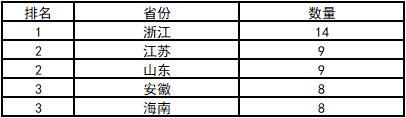 表2:省份擒奖TOP3