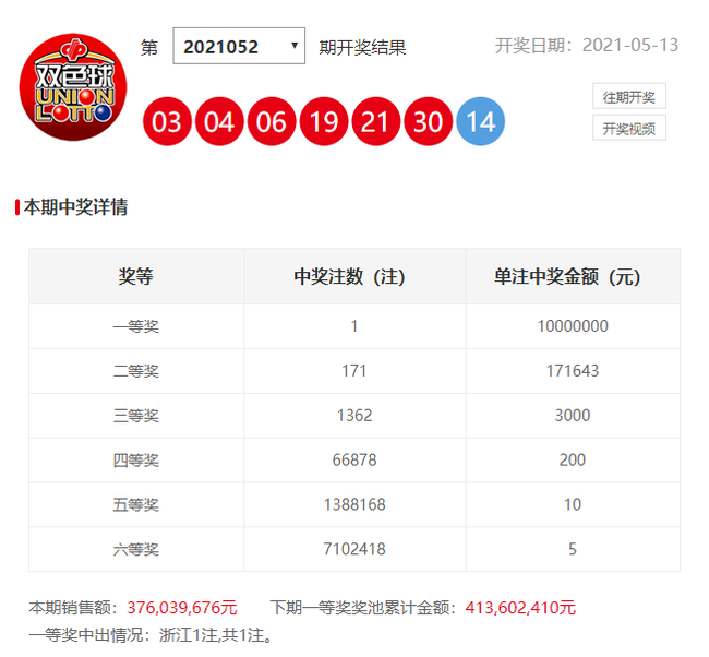 北京时间2021年05月13日,福彩双色球第21052期开奖,以下是详细开奖流程: