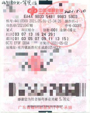 5月2日晚,双色球第2021047期开奖,开奖号码为红球:03、07、13、16、24、29,蓝球:01。当期,全国共开出5注一等奖,单注奖金为941万元。广东省中出1注一等奖,这注大奖花落中山市东升镇新胜村东成路105号3卡的44110569号福彩投注站,这是中山彩民今年中出的第6个500万元以上福彩大奖!