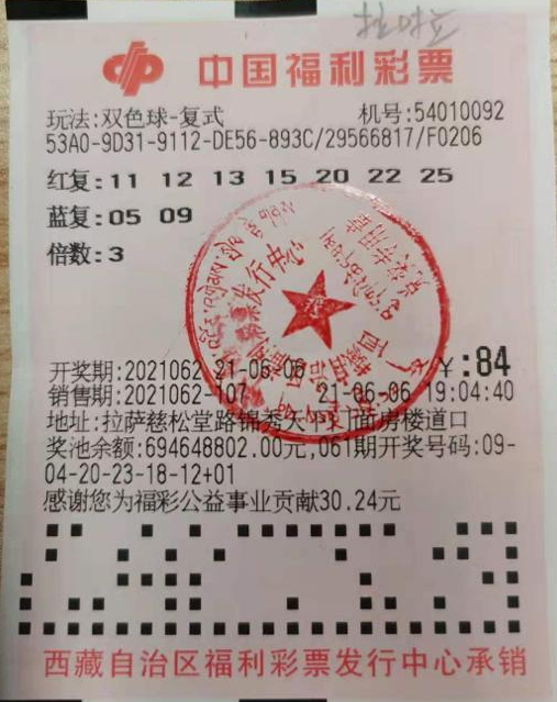 2021年6月6日,真是一个吉利的日子,西藏拉萨市彩民阿旺先生(化名)中得双色球二等奖6注,单注中奖金额42.584万元,总计中得255.5万元大奖。据检索得知,中出大奖的销售网点是位于拉萨市慈松堂路的54010092号投注站。