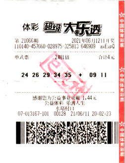 2021年6月12日晚,大乐透第21066期开奖,我省晋中市灵石幸运的购彩者福先生(化姓)凭借一张4元2期单式多期票成功在第一期就斩获598万元大奖,时隔一周,6月19日晚开奖的大乐透第21069期,我省太原的禄先生(化姓)凭借一张126元的“7+3”复式票,成功收获当期一等奖1注、二等奖2注、四等奖10注、五等奖20注、六等奖10注、八等奖20注,总奖金902万余元。6月23日,山西省体育彩票管理中心在颁奖大厅为这两位幸运的大奖得主举行了颁奖仪式,兑付了大奖。
