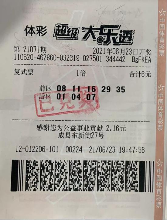 6月23日,大乐透第21071期前区开出号码“08、11、16、29、35”,后区开出号码“01、04”。本期甘肃省陇南市成县东新街12206网点中得超级大乐透一等奖(基本)1注,单注奖金628万元!一日之间喜讯传遍全县,大奖诞生的销售网点更是在一大早就被购彩者们“踏破门槛”,引来众多购彩者进店讨个好彩头。其中就有购彩者说道:“中奖事件就发生在我们这个县城,让我们真真切切感受到了中国体育彩票的真实性。”