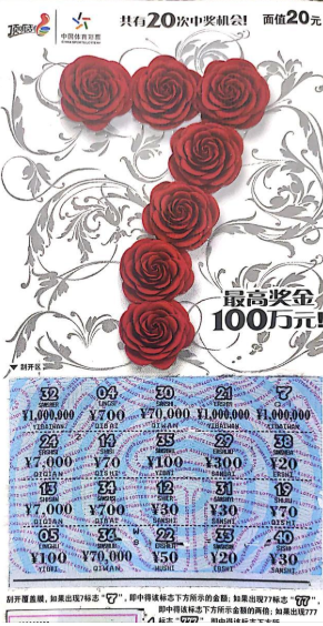 7月1日,凉山一购彩者赶到四川省体彩中心兑奖大厅办理兑奖事宜,凭借一张面值20元的顶呱刮游戏“7”领走奖金100万元中奖者是一名90后,据他介绍,上周三他陪同事一起去位于西昌市海河西路82号的83488体彩店去投注欧洲杯,他闲着没事就掏20块钱买了一张“7”刮了玩儿,第一张中了20元,再拿一张又刮中20元,刮第三张时,他先将中奖标志那一行刮开,发现了中奖标志“7”,随后又刮开下方金额,一个0,两个0,三个0…… 起初他以为中了1万元,同事拿过去仔细一数,告诉他中了100万大奖!