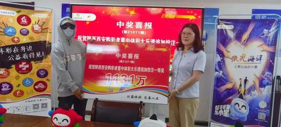 6月29日,大奖得主董先生(化姓)来到陕西省体彩中心领取属于他的那份幸运大奖,值此陕西体彩电彩上市20周年之际,省体彩中心特邀请“陕西体彩电彩上市20周年最佳合作奖”代表毛玥作为“体彩公信证言人”为大奖得主进行颁奖。