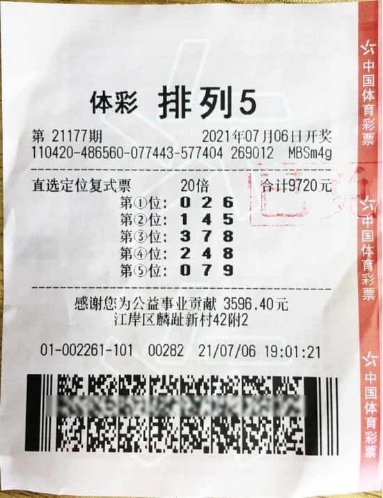 7月6日晚,体彩排列5第21177期开奖,武汉一彩友中得200万元大奖。其购买方式采用的是直选定位复式投注法,5位数全部都选了3个号码,凭借15个号“逮”住了这个大奖。