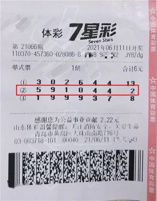 “有时候很想家人,我就想要是我买的彩票能中大奖就好了,就可以回家和他们团聚了。”怀揣着大奖梦的刘先生会偶尔到彩票站买几注彩票。“我也不太懂,都是销售员帮忙选的,有时候买大乐透,有时候买7星彩。”6月11日,刘先生又来到体彩店,购买了一张7星彩彩票,销售员帮他机选了3注号码,共花费6元。当晚开奖,3注号码中的第二注“5、9、1、0、4、4,2”与当期开奖号码完全一致,中得一等奖500万元。