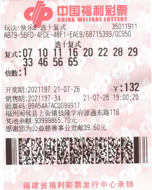 7月26日晚开奖的快乐8游戏第2021197期开奖,中出1注“选十中十”,奖金达500万元。这全国唯一的1注500万元大奖被福建彩民斩获,大奖花落福州市闽侯县上街镇钱隆学府源通东路118的福彩35011911彩站,中奖彩票是一张12个号码的复式票,击中10个开奖号码,不仅中得1注500万元的“选十中十”,还中得20注单注奖金为8000元的“选十中九”和45注单注奖金为800元的“选十中八”,总奖金高达519.6万元!这是福建彩民斩获的第3注快乐8“选十中十”。谢先生就是这个大奖的幸运得主。