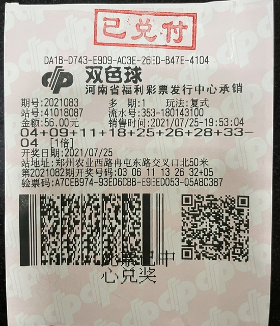 7月25日晚,福彩双色球第2021083期开出头奖25注,单注奖金为517万多元,其中河南彩民收获1注,花落郑州,这也是今年河南彩民收获的第36注双色球一等奖,再现大奖福地。