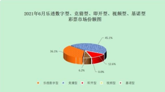 1-6月累计,乐透数字型彩票销售840.85亿元,同比减少61.38亿元;竞猜型彩票销售598.01亿元,同比增长427.19亿元;即开型彩票销售260.98亿元,同比增加146.06亿元;视频型彩票销售0.0062亿元,同比减少50.64亿元;基诺型彩票销售84.53亿元,同比增加84.15亿元。1-6月乐透数字型、竞猜型、即开型、视频型和基诺型彩票销售量分别占彩票销售总量的47.1%、33.5%、14.6%、0.0%、4.8%。