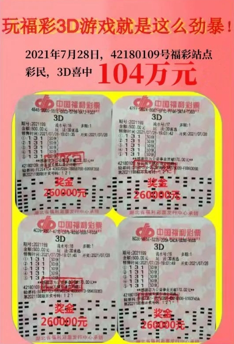 7月28日,十堰房县彩民李先生(化姓)通过直选多倍投注,揽获3D奖金104万元。