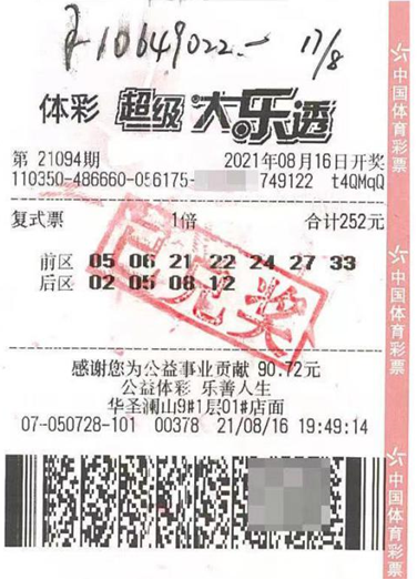 8月16日晚,体彩超级大乐透第21094期开奖,开奖号码为:前区05、06、24、27、33,后区05、12。全国共开出基本一等奖6注,追加一等奖2注,其中,1注奖金为990万元的基本一等奖就幸运地被来自我们福建南平的购彩者幸运中得。第二天一早,中奖者林先生就携带中奖票来到了福建省体育彩票管理中心办理兑奖手续,也让我们了解了他是如何与大奖结缘的。