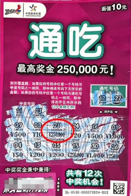 前不久,山东烟台一位购彩者下班路过体彩店,由于当天的工作颇为顺利,便想着进店刮几张顶呱刮碰运气,结果幸运刮中“通吃”25万元头奖。山东枣庄一位购彩者也是如此,下班路过体彩店,看到“中国红”便买了一整本带回家刮,从中刮出了25万元头奖。