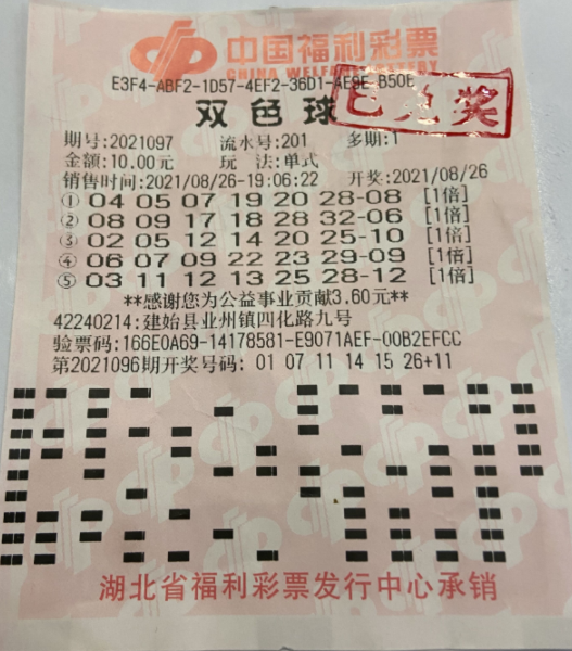 8月30日上午,中得双色球第2021097期532万头奖的恩施市建始彩民宁先生(化姓)携儿子,现身湖北省福彩中心兑奖处