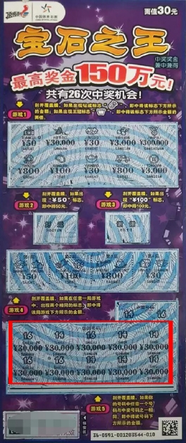 当天下午,王先生和平时一样到家附近的体彩店里买竞彩,结果刚进店里,代销者就向他介绍了店里新进的顶呱刮。王先生很感兴趣,就打算刮几张试试运气,于是选择了“宝石之王”,刚开始发现中奖时他以为是3000元。“当时我心想3000元就知足了!结果店里的代销者告诉我继续往下刮,可能后面还有一个零。”王先生说,他接着刮发现果然还有一个零,当时就以为是3万了,可接着刮发现后面还有奖,等全刮出来发现自己中的是30万!