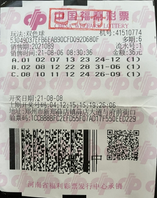据了解,8月8日晚,福彩双色球第2021089期开出一等奖51注,其中河南彩民收获4注,分落4个投注站。开奖后,三位大奖得主先后领走奖金,仅剩刘先生迟迟未现身,数据显示,他的大奖彩票是一张单式3注6期的多期票,出自郑州市新郑薛店镇薛店大道府前街41510774投注站,命中当期一等奖533万元。