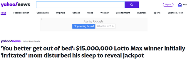 安德鲁·韦宁格购买的彩票已经有很长时间了。3月26日,他在Pleasantville Rexall药店购买了彩票之后,就把核对彩票这件事情忘得一干二净,直到他的妈妈发现了这张彩票,核对完之后才知道他的儿子中了1500万加元的超级大奖。
