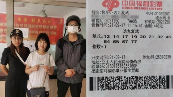 2021年9月17日,福彩快乐8开奖,选九玩法全国中出一等奖11注,鞍山30人合买团以一张440元的选九12码复式自选票,一举拿下10注一等奖,总奖金320万余元
