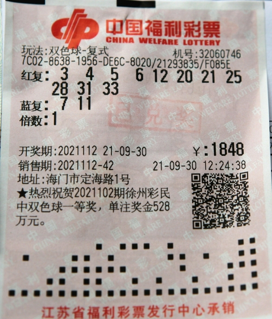 当期江苏省两位幸运的中奖彩民来自南通市,其中一位彩民于2021年9月30日12时24分38秒,在南通海门市定海路1号,编号为32060746的福彩销售网点,花费1848元,以复式投注的方式购得924注彩票,其中1注与当期开出的中奖号码完全一致,收获一等奖1注,二等奖1注,三等奖30注,四等奖180注,五等奖350注和六等奖81注,奖金共计557万多元。