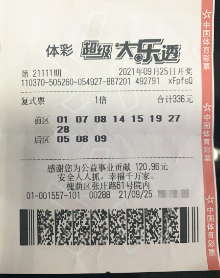 9月25日,超级大乐透第21111期开奖,前区开出号码“07、08、15、19、28”,后区开出号码“08、09”。济南一幸运购彩者凭借一张8+3复式票中得大乐透一等奖1注,其他奖项若干,单票共擒奖7293636元,在国庆节前收获一份家国同庆的“豪华大礼”。