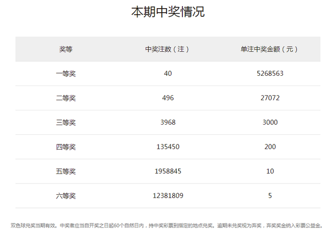 22:20 本期一等奖井喷40注,单注奖金526万分落全国15地。其中河南中出12注,或爆6312万大奖;河北中出11注,或爆5786万大奖;浙江、重庆、湖北、四川各中出2注;陕西、辽宁、吉林、黑龙江、山东、广西、山西、甘肃、深圳各中出1注。二等奖开出496注,单注奖金2.7万多元。本期双色球全国销量为3.55亿元,计奖结束后奖池余额7.34亿元。