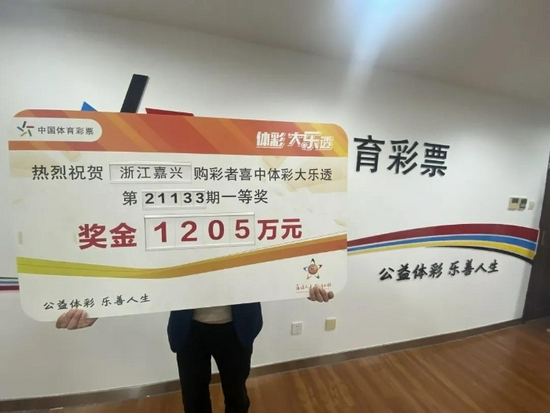 11月22日一早,中得体彩大乐透第21133期1注追加一等奖1205万余元的嘉兴购彩者来到浙江省体育彩票管理中心领奖。