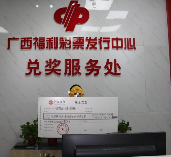开奖过后一个星期,小编终于在广西福彩兑奖服务中心见到了这位幸运购彩者。来自隆林的王女士在家人的陪同下前来办理兑奖手续。