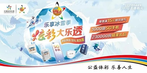 “乐享冰雪季 炫彩大乐透”活动共开展10期,购买单票满15元的大乐透彩票,即有机会获得5G手机、定制旅行箱、定制环保袋、定制口罩、电商卡、定制公筷等惊喜好礼。活动期间共有超3900万人次参与活动,送出奖品二十余万份,在全国各地掀起了购彩热潮。