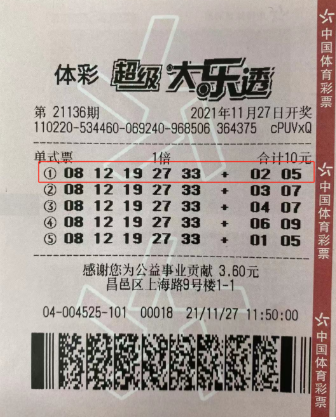 继11月2日吉林省内购彩者中出7星彩1000万、11月17日中出大乐透777万之后,11月27日晚,吉林市中出超级大乐透1注一等奖,奖金总计1009万。这是11月份吉林省中出的第三个500万以上的大奖。