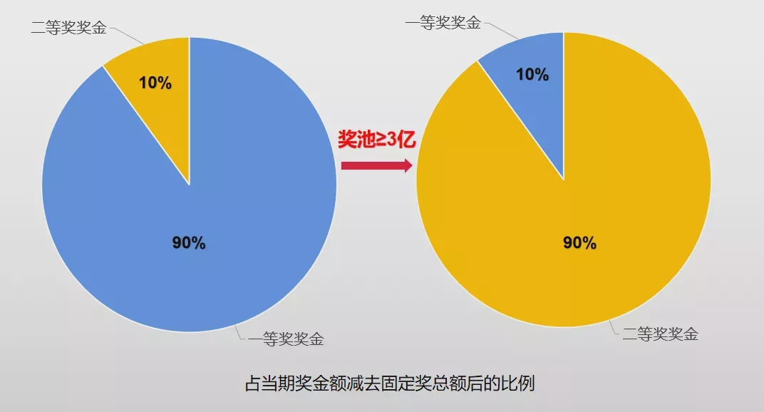 从理论上看,由于奖池充足能够保障一等奖奖金成色不变。而二等奖奖金分配比例从原先的10%变为90%,于是奖金含金量大大提升。因此在本期的开奖中,一等奖与二等奖均达到了单注封顶500万元。