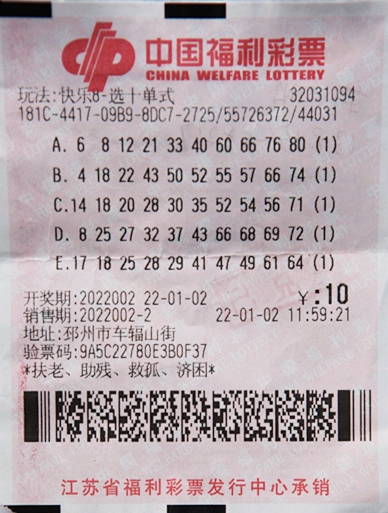 1月2日晚,“快乐8”游戏第2022002期开奖,开出的中奖号码为“02、04、13、18、21、22、25、43、50、52、54、55、57、63、65、66、68、74、75、78”。当期,全国共诞出“选十中十”大奖1注,单注奖金500万元。唯一1注大奖的得主来自江苏徐州。这也是新年伊始全国中出的第1注快乐8“选十中十”大奖!中奖票是一张仅花费10元的“选十单式”复制票,其中的第2注号码全部出现在当期中奖号码之中,最终一举收获500万元奖金。该票出自邳州市车辐山街、编号为32031094的福彩投注站,出票时间为2022年1月2日11时59分21秒。