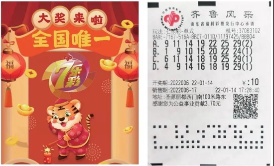 新年迎好运,大奖乐不停!1月14日,七乐彩第2022006期开奖,全国中出1注一等奖,大奖花落济宁市泗水县。根据数据检索,这张当期“全国唯一”的中奖彩票为一张投注额10元的自选单式票,中得1注一等奖和3注七等奖,中奖金额合计4165986元。中奖彩票诞生在济宁市泗水县圣源丽都西门南100米路东第37083102号福彩站。
